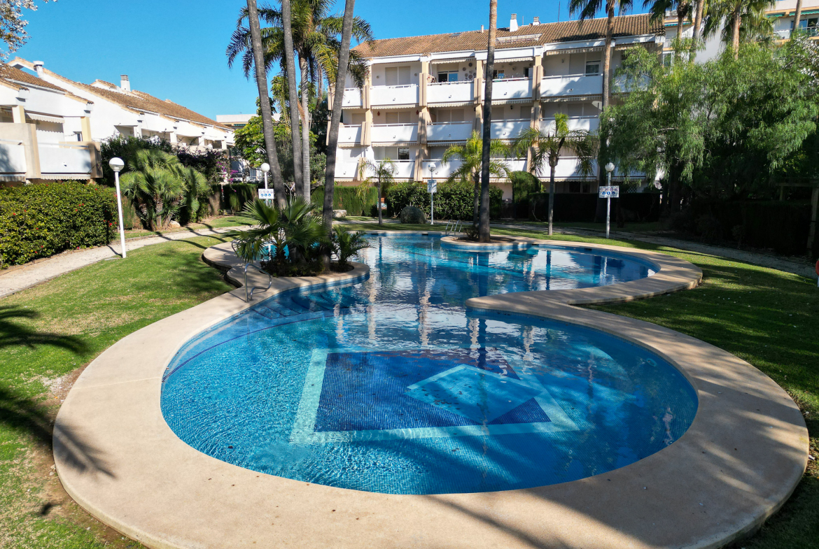 This is an exceptional 3 bedroom, 2 bathroom ground floor apartment with views over the pool and garden situated in a very good location near Javea beach.