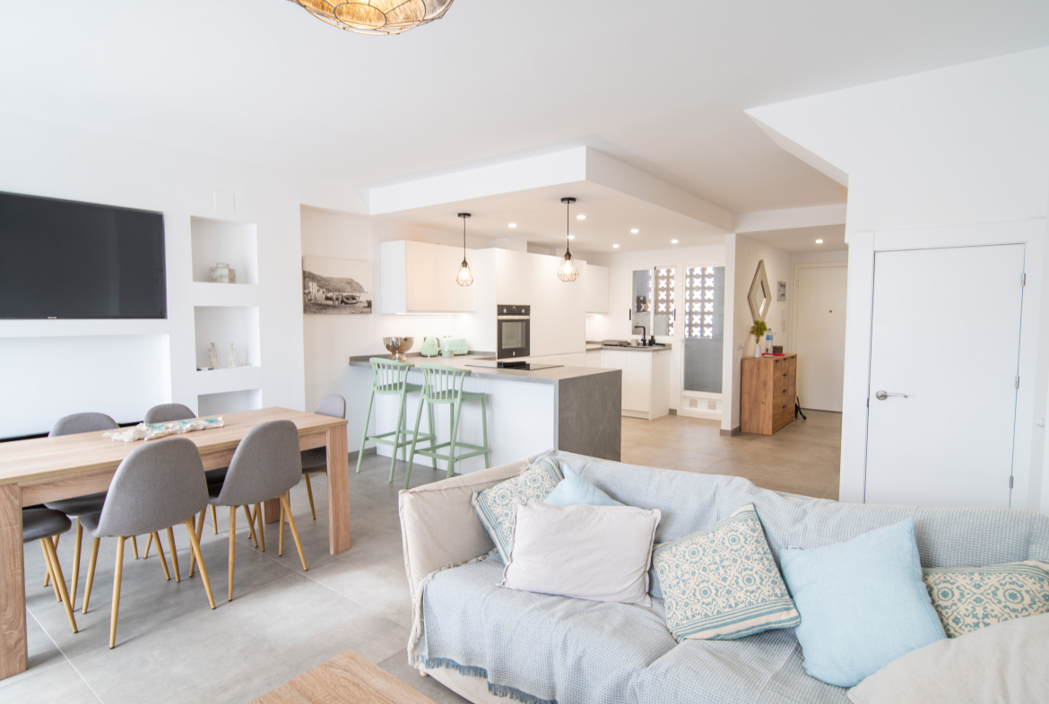This exceptional duplex has been completely refurbished to a very high standard in a modern Ibiza style, combining comfort and elegance throughout. Ideally located within walking distance of the Arenal beach, as well as a great selection of bars, restaurants and a supermarket, the property sits on a quiet road just set back from the seafront, offering both convenience and tranquillity.
