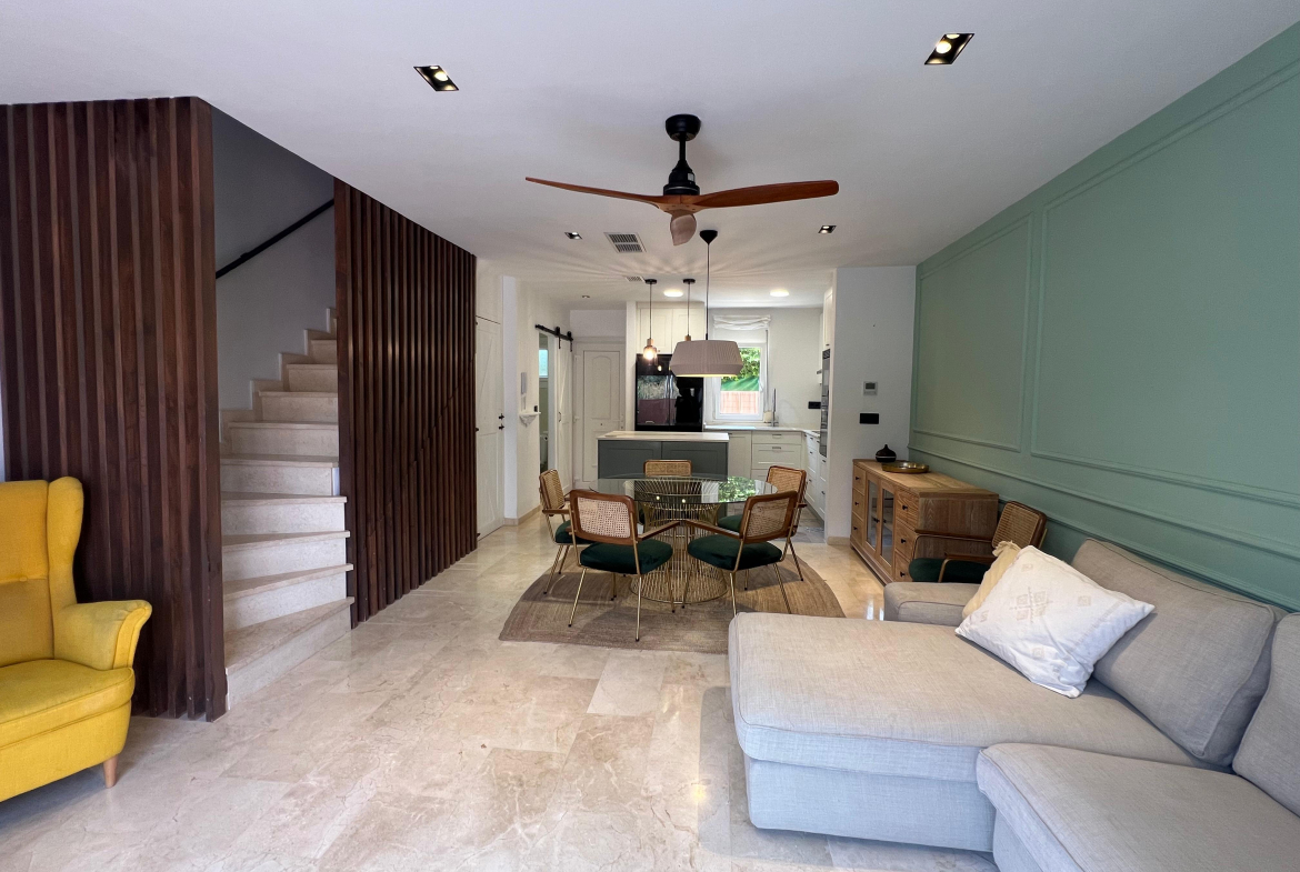 Located in a prime area between the Arenal and Port, this modern townhouse is spread over three floors and forms part of a well-maintained community with access to a communal swimming pool, tennis court and paddle court.