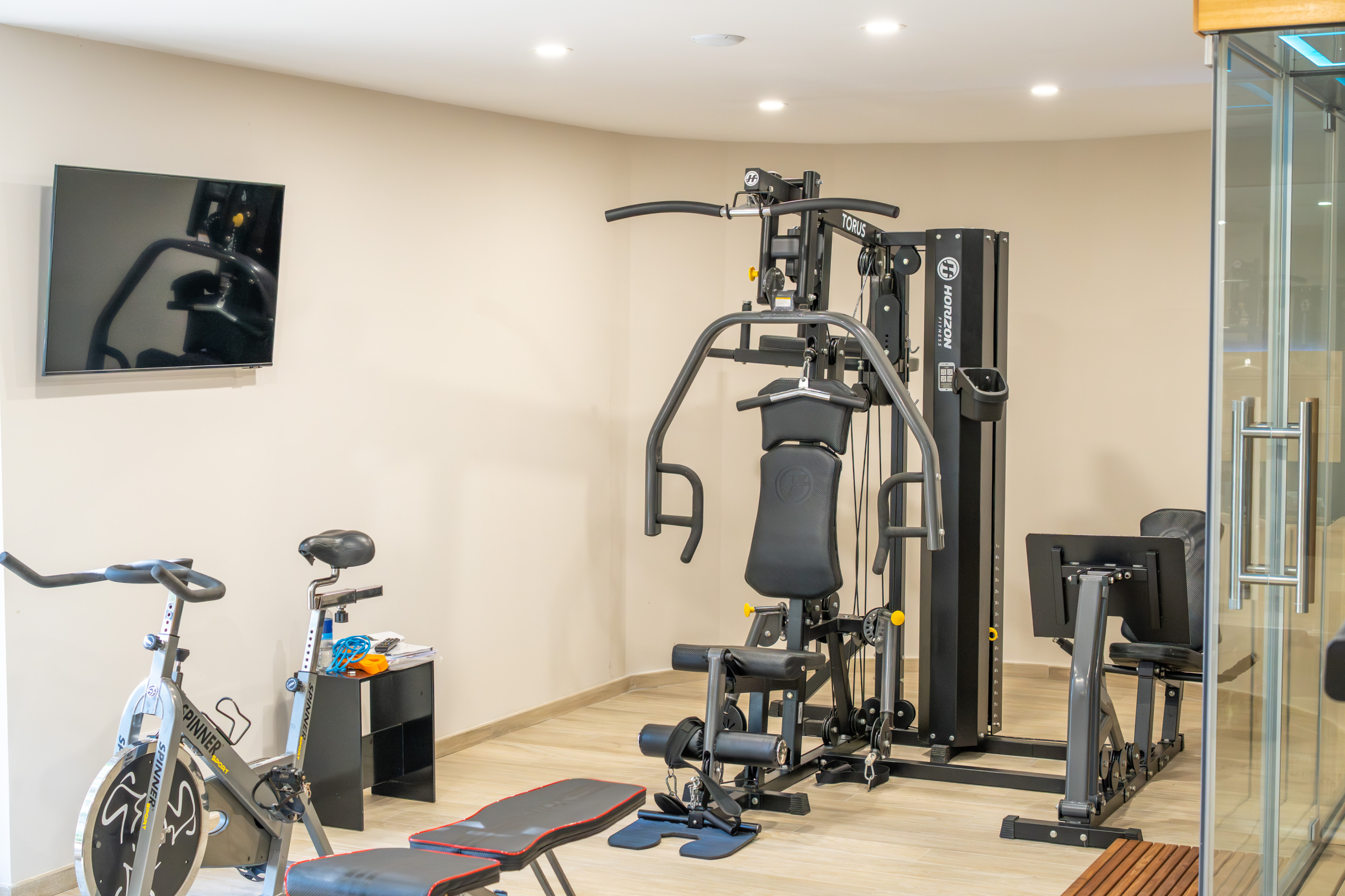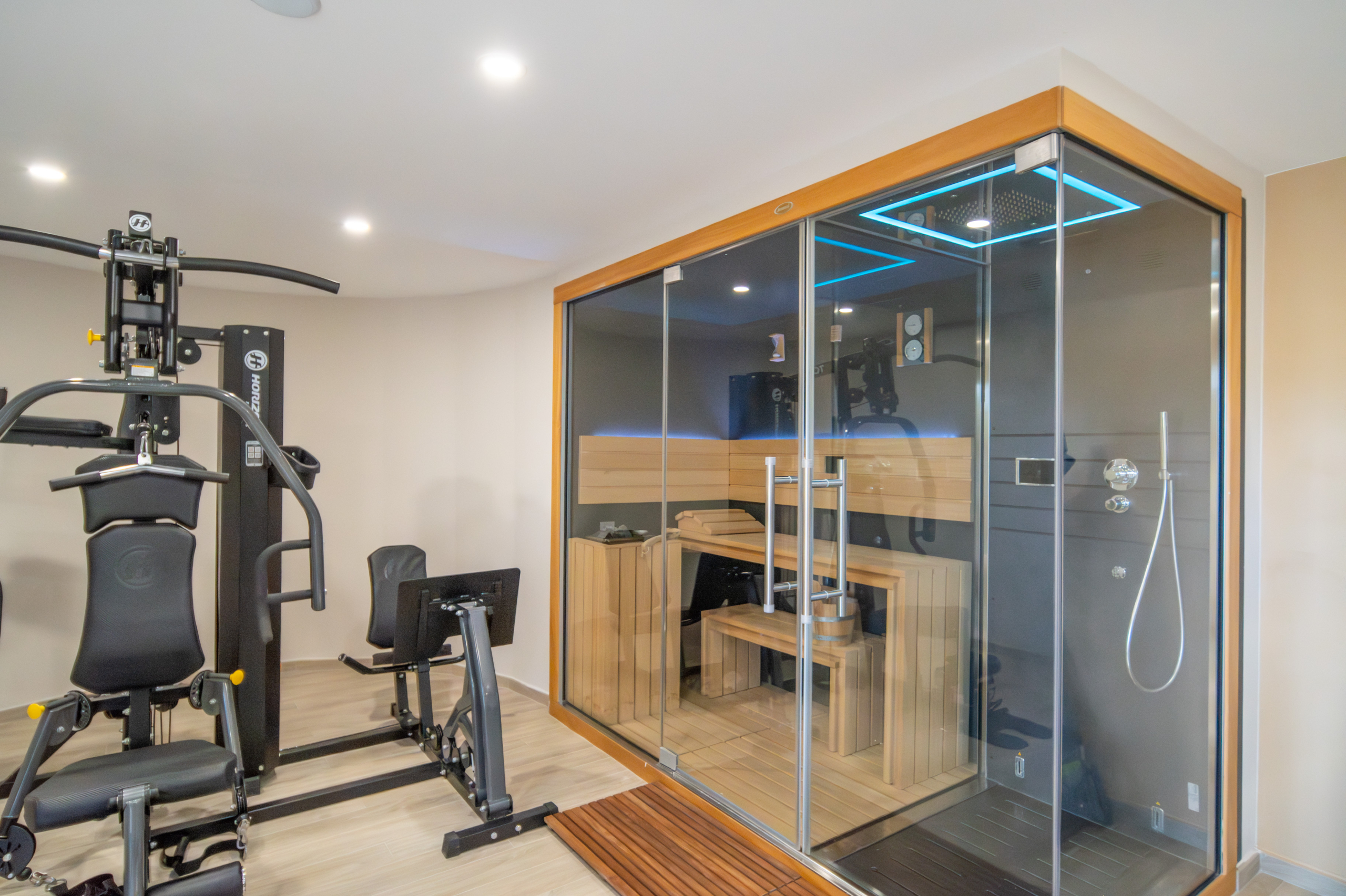 On the lower level, a double garage, gymnasium with sliding doors, sauna, and shower add yet another layer of luxury.